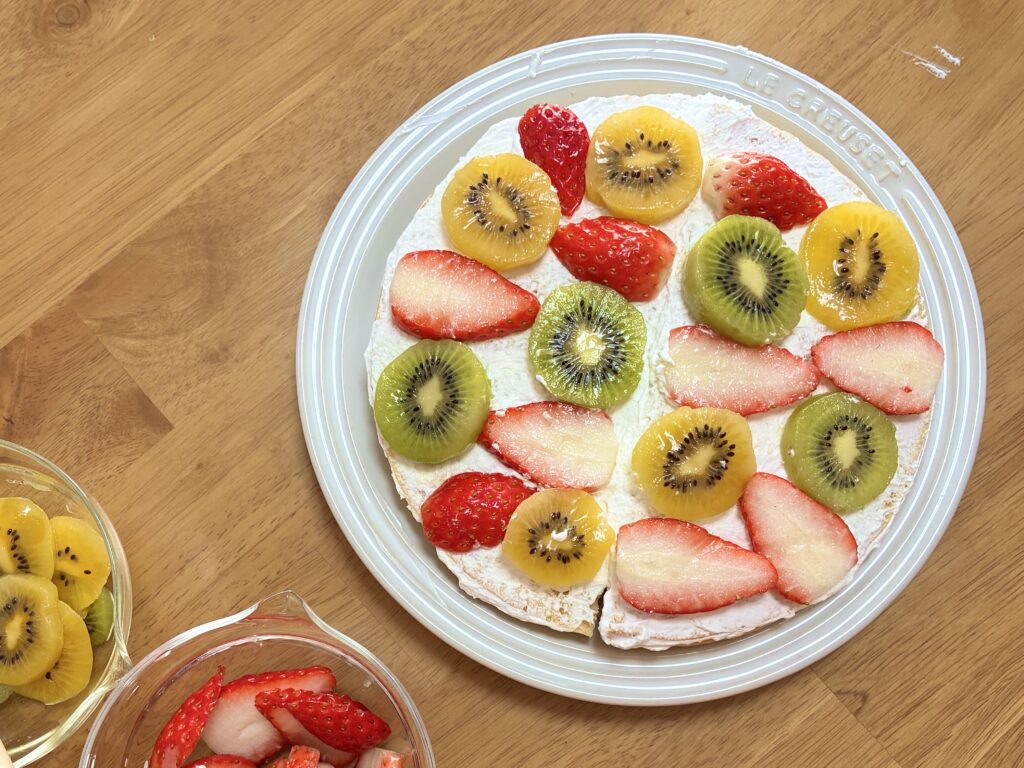 その上に残りのフルーツとクリームを飾り付けたら完成!